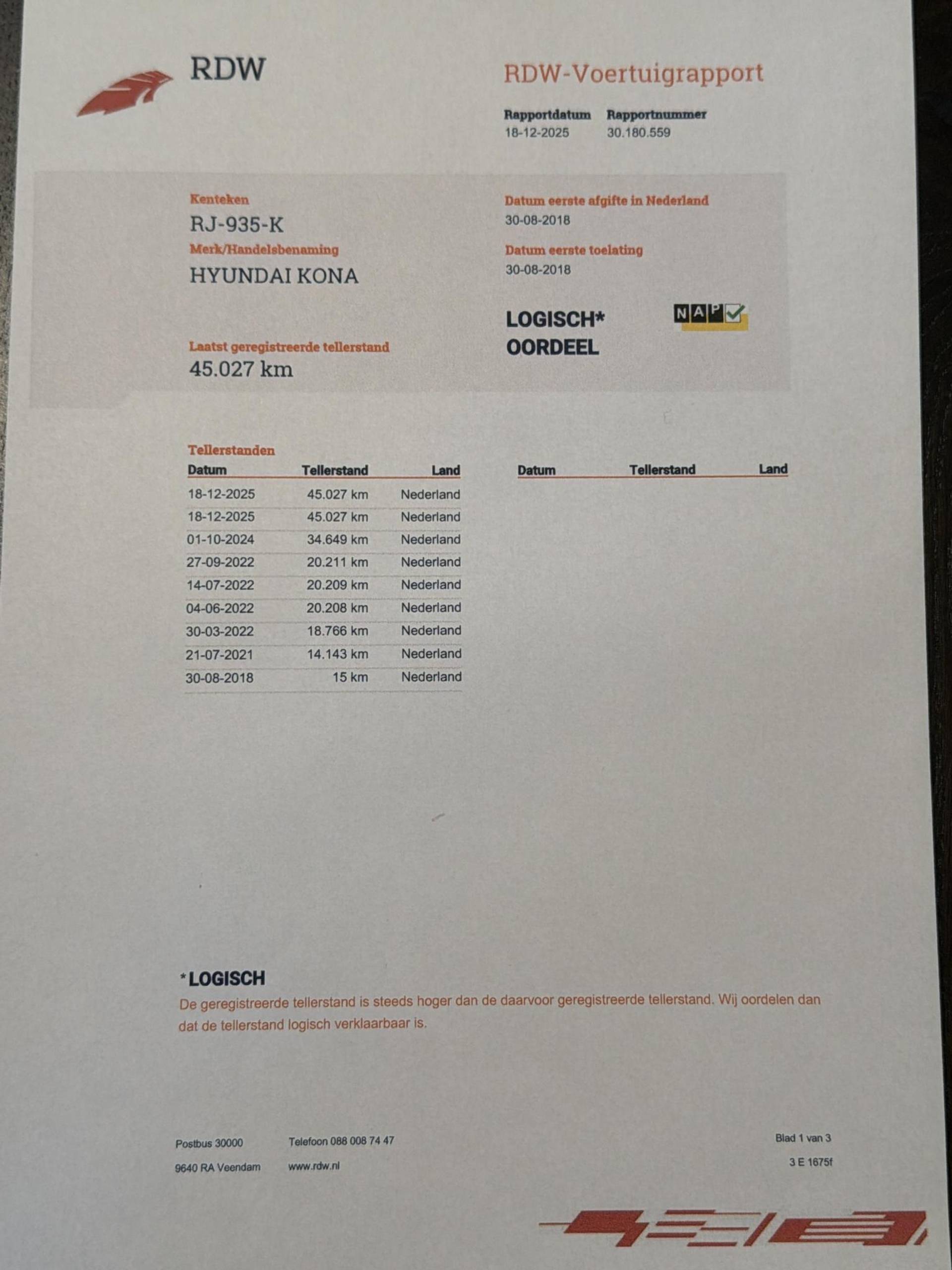 ✓ APK bij aflevering: N