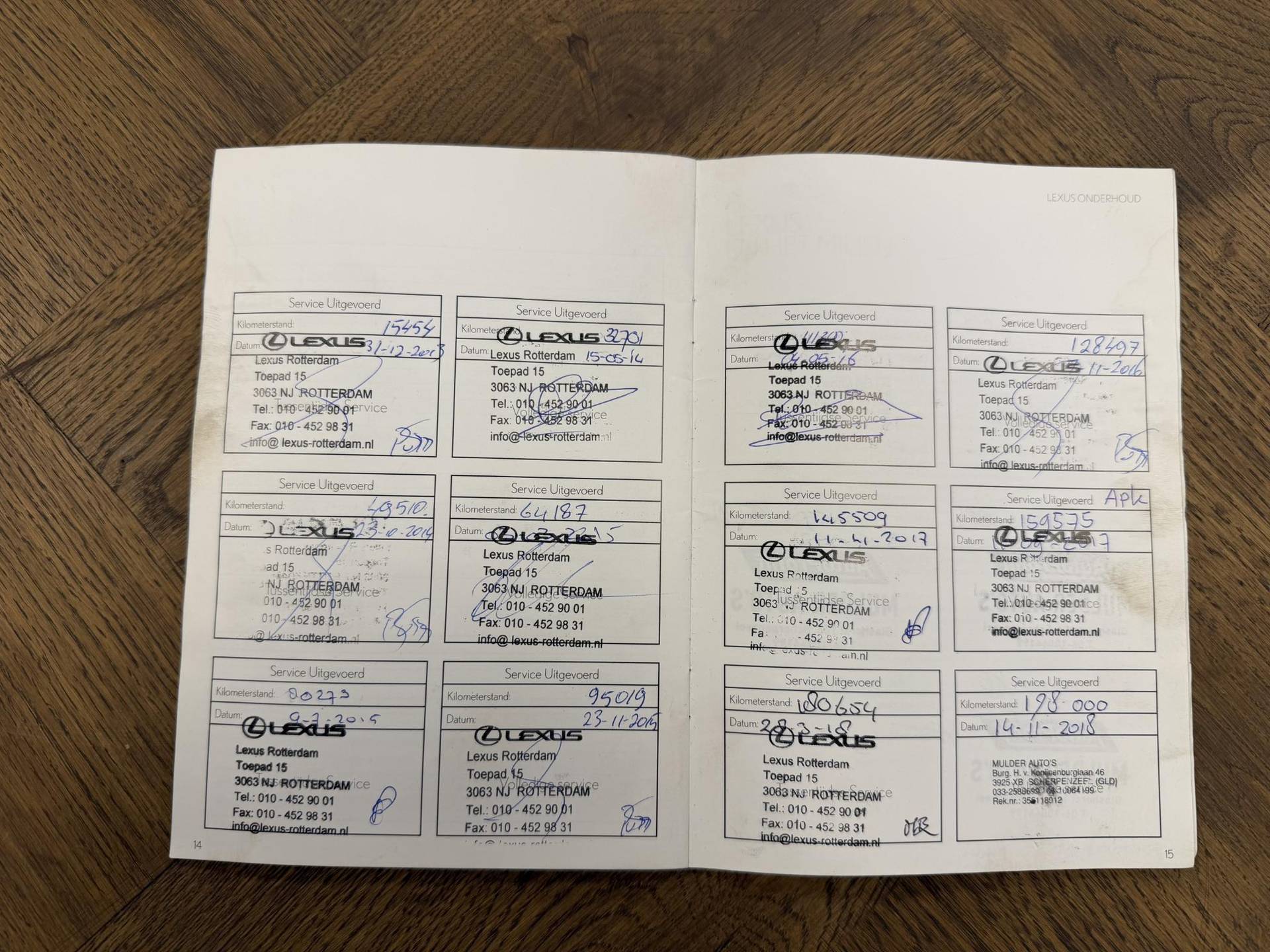 Tot 180.000 km dealeronderhouden bij Lexus. De laatste onderhoudsbeurt is uitgevoerd bij 299.000 km.