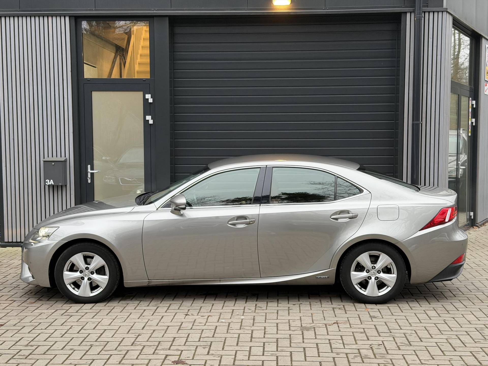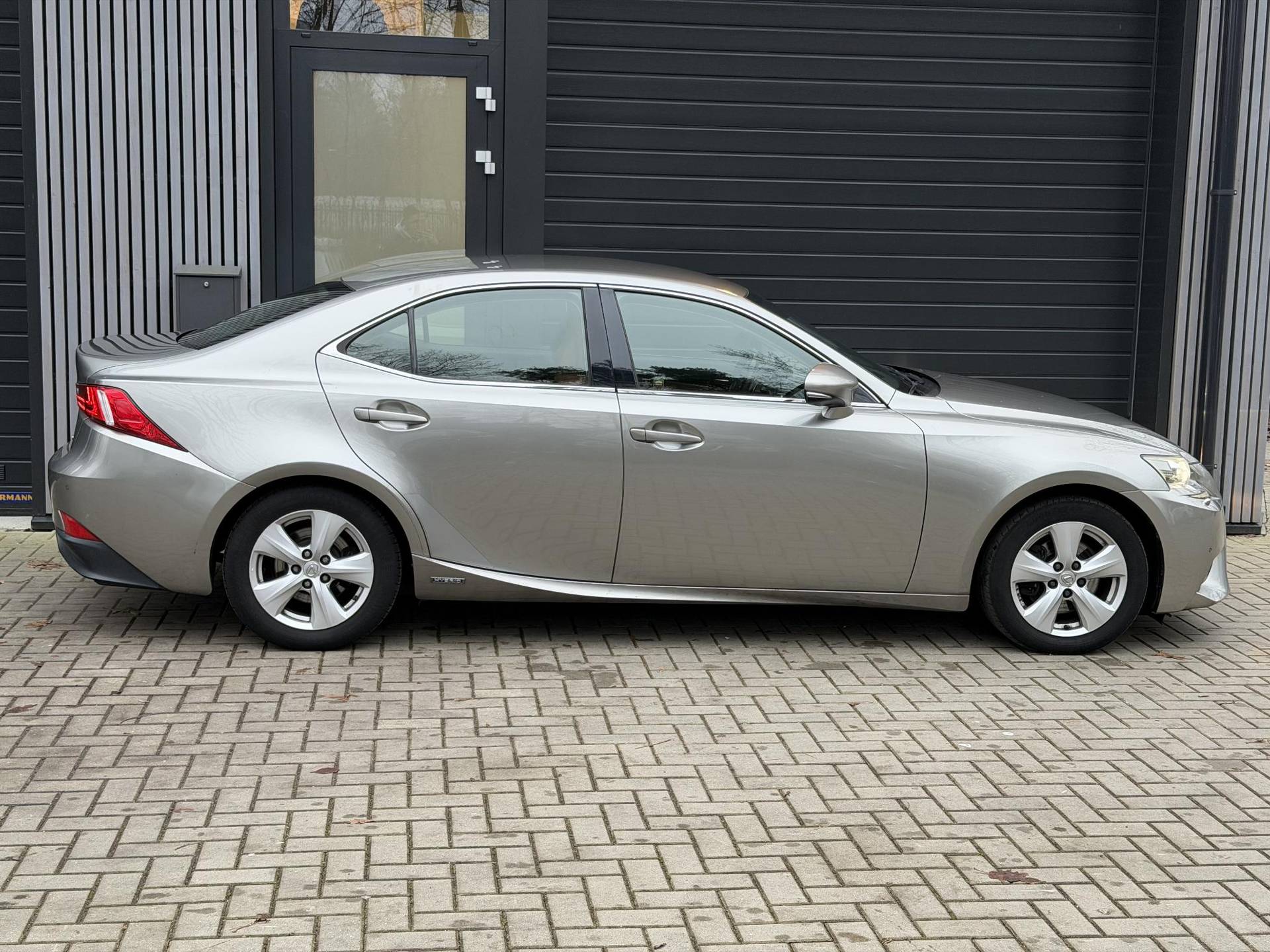 Te koop aangeboden: een Lexus IS 300h in de kleur Sonic Titanium metallic. Deze hybride sedan staat bekend om zijn comfort, betrouwbaarheid en efficiënte aandrijflijn.
