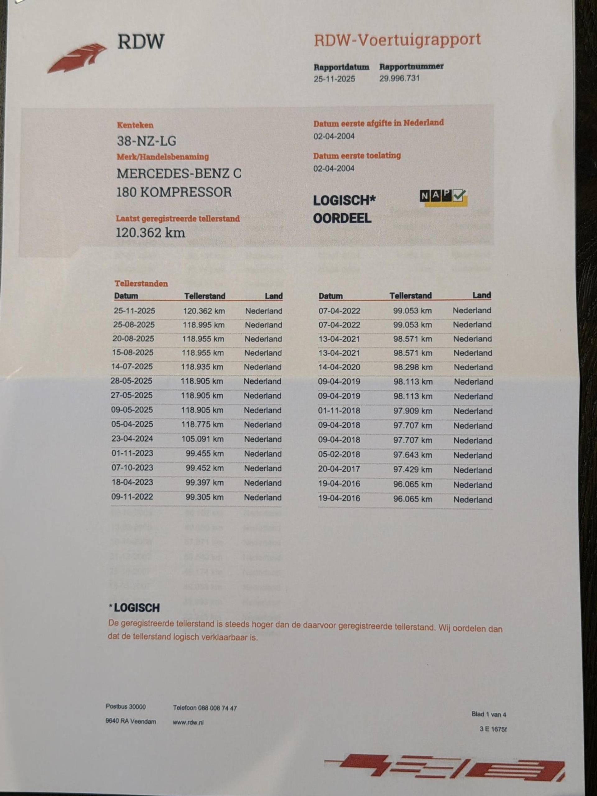 ✓ Onderhoudsboekje (fysiek)