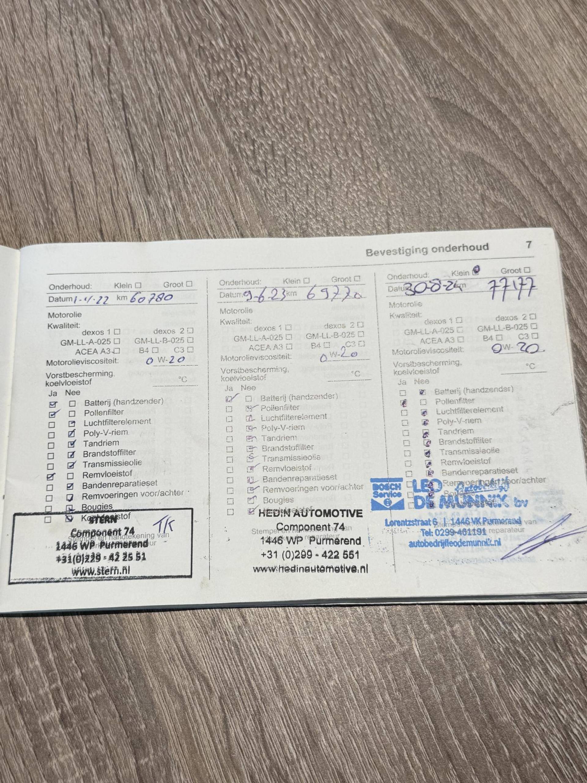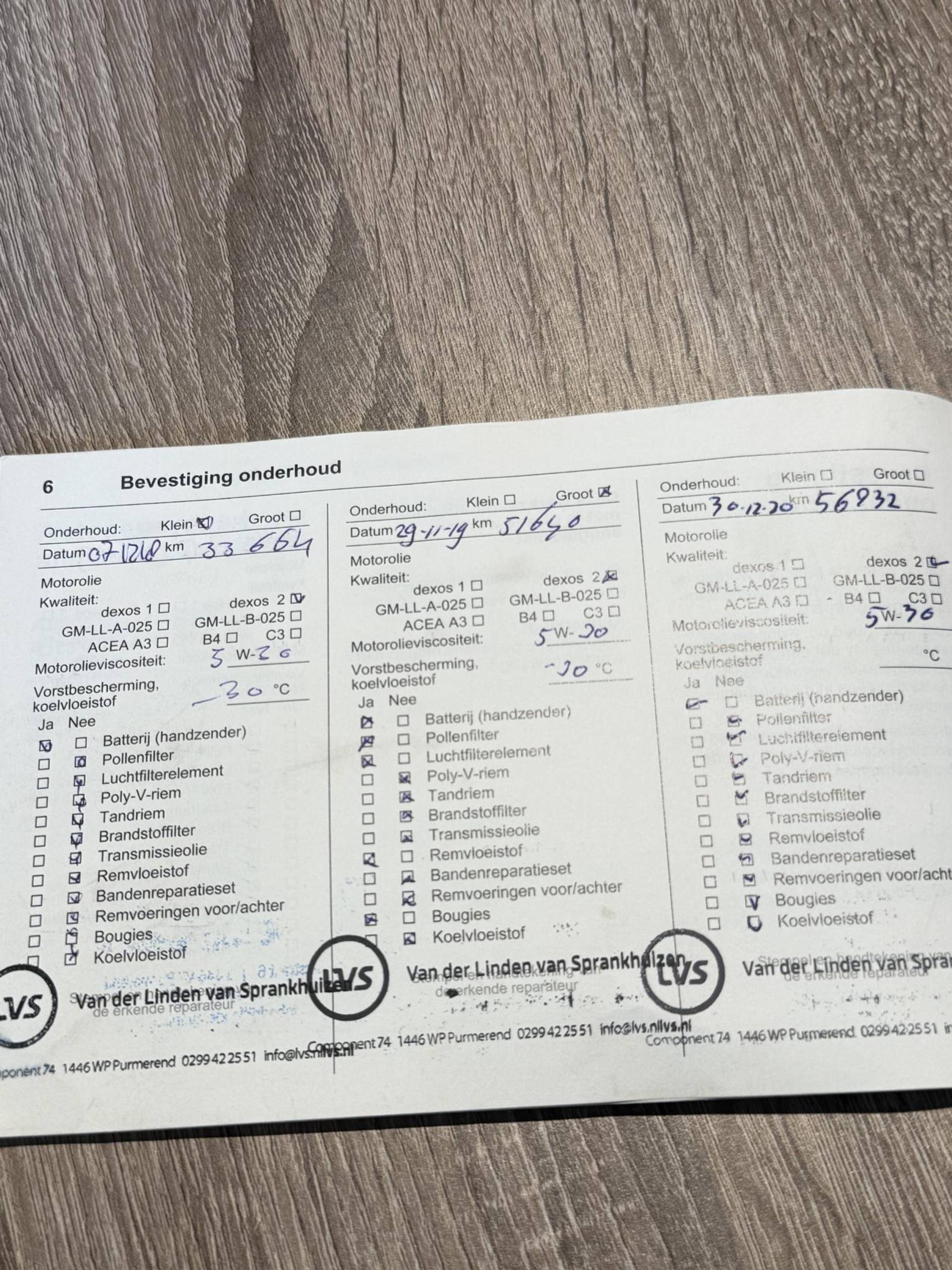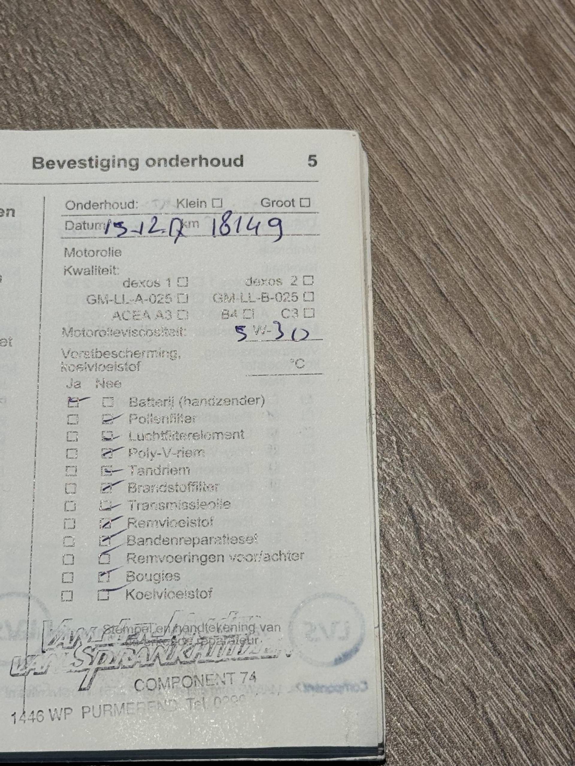 ✓ Onderhoudsboekje (fysiek)