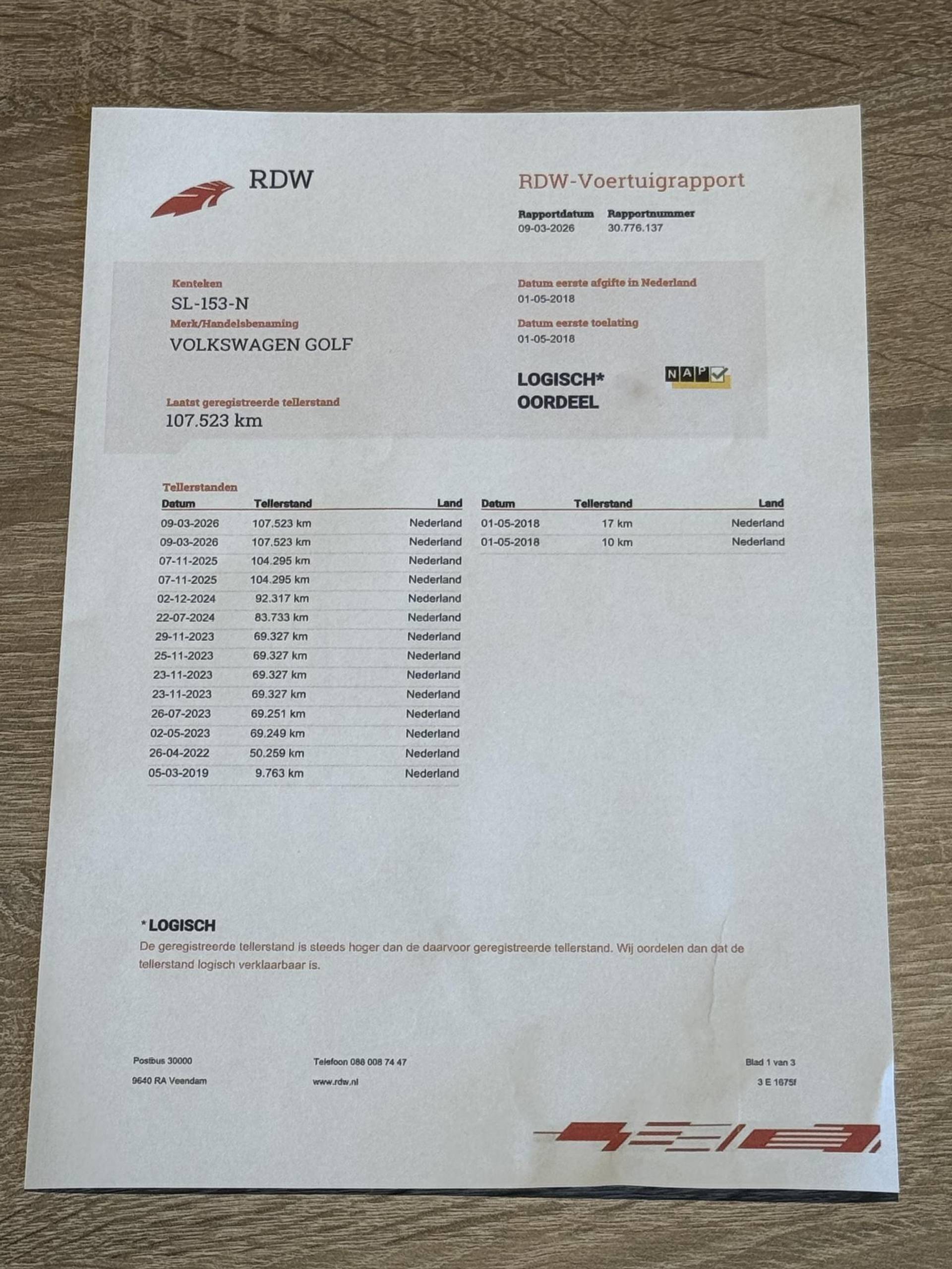 • 07-11-2025 (104.295 km): kleine beurt