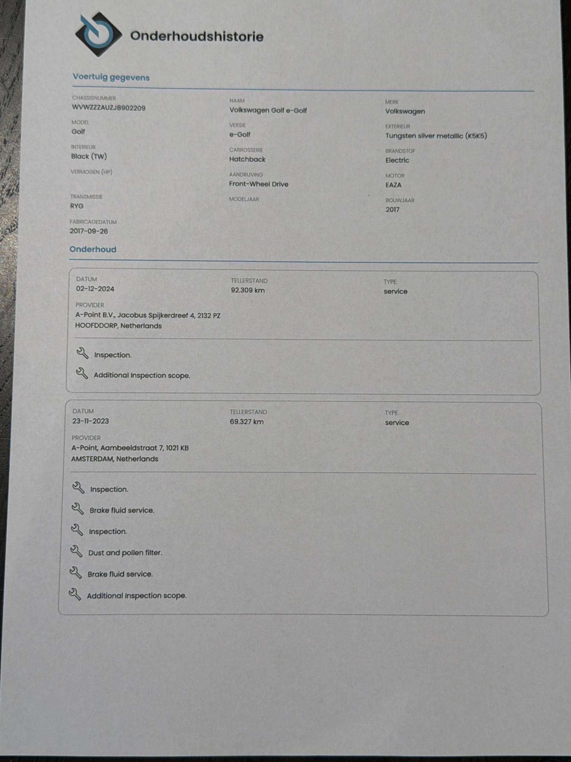Volledige dealeronderhoudshistorie beschikbaar