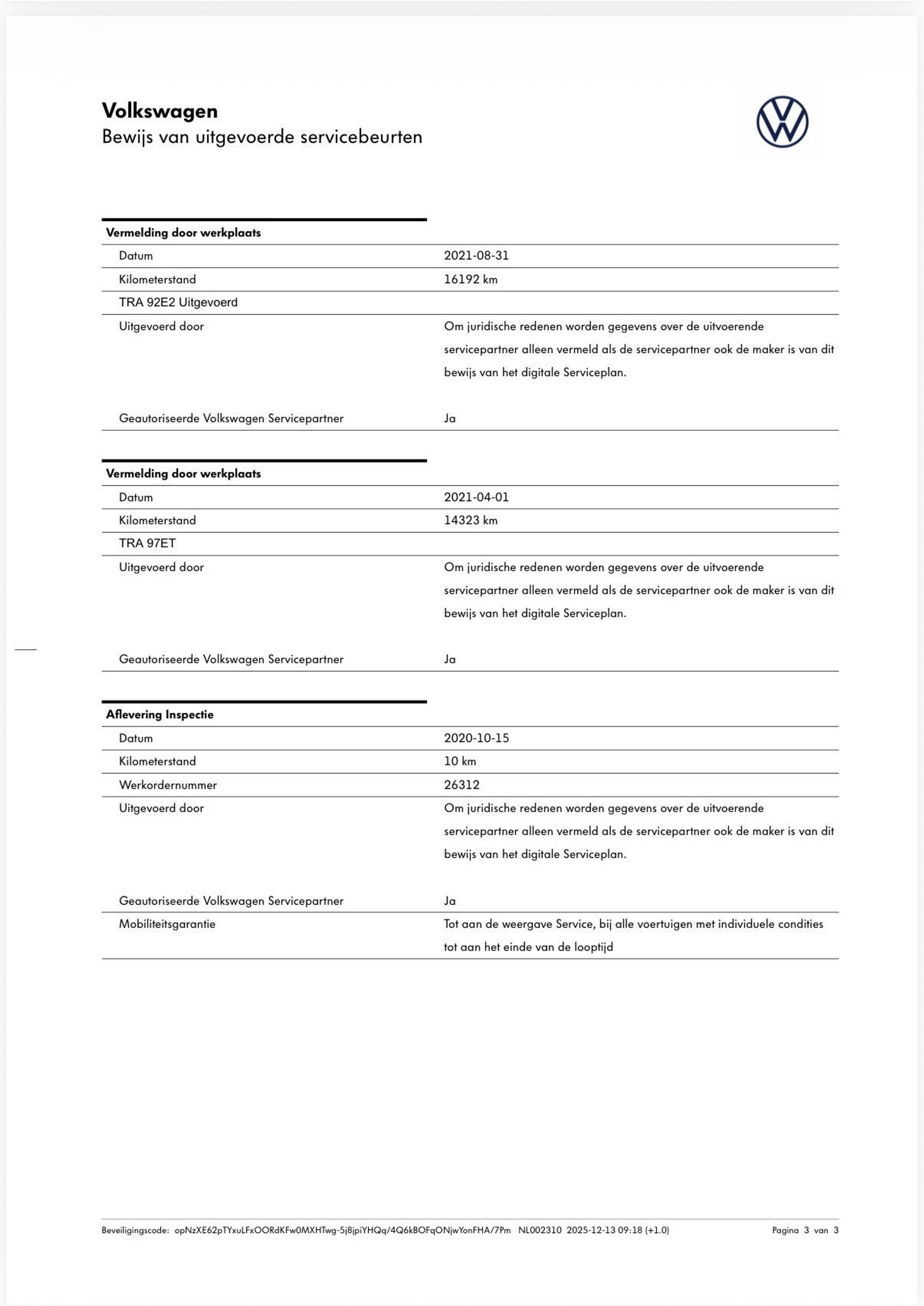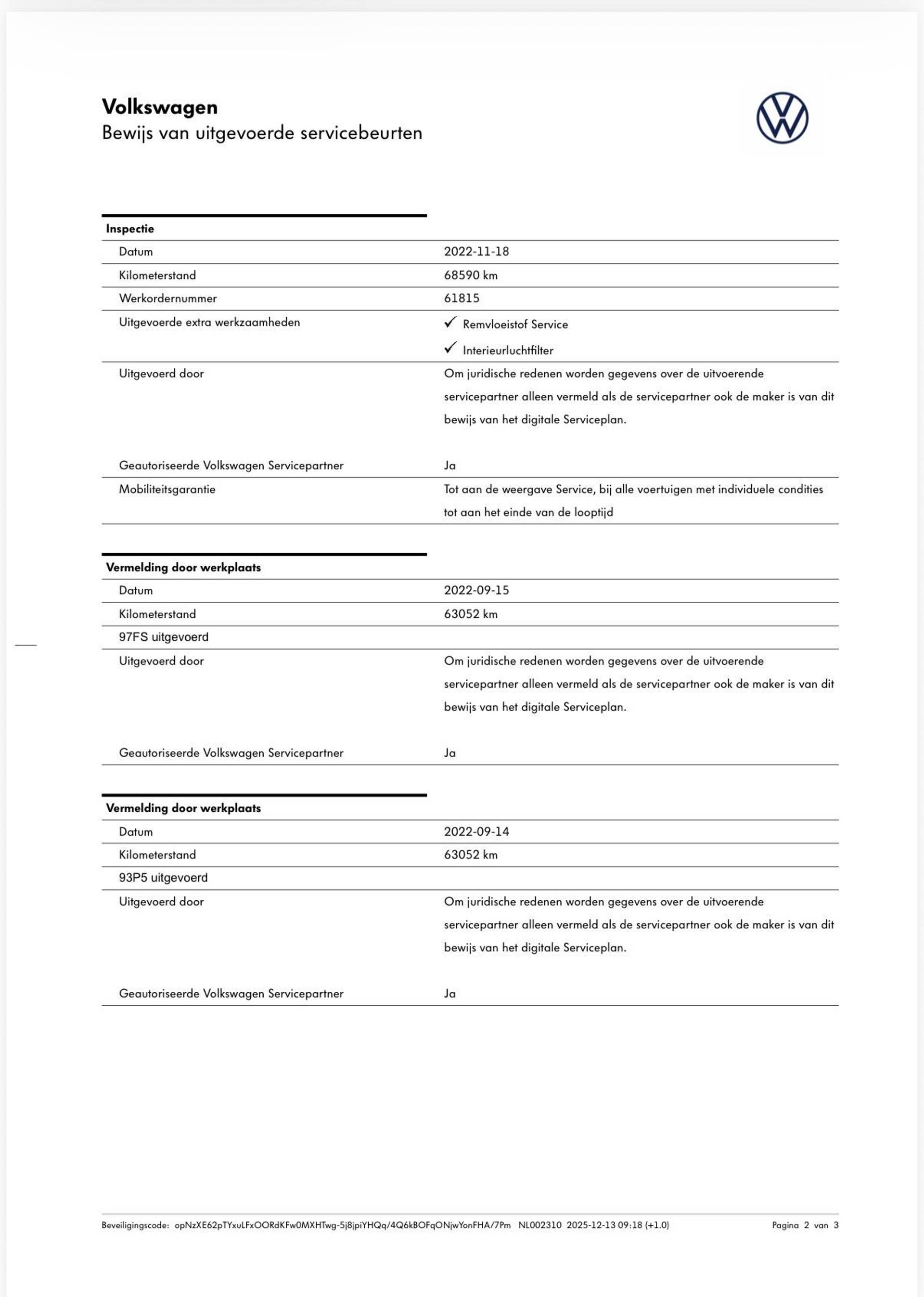 Onderhoudshistorie: